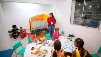 Enquanto a música toma conta da Mica Lauro, um outro tipo de energia, mais tranquila e lúdica, pulsa em um espaço exclusivo. Crianças de 4 a 12 anos, filhos dos ambulantes que movimentam a festa, encontram ali um mundo de brincadeiras, leitura e cuidado. A iniciativa da Prefeitura de Lauro de Freitas, através da Secretaria Municipal de Educação (SEMED), vai além de um serviço. Ela reconhece uma necessidade silenciosa das famílias que trabalham no evento: a paz de espírito para exercer sua função sabendo que seus filhos estão protegidos.