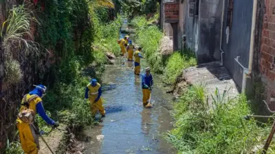 A Prefeitura de Lauro de Freitas intensificou nesta quinta-feira, 19 de março de 2026, os serviços de limpeza e desobstrução do canal do Rio Goró, localizado na Rua Luiz Gonzaga, no Loteamento Jardim Pouso Alegre, no bairro de Itinga. A ação, executada pela Secretaria Municipal de Infraestrutura e Serviços Públicos (SEINFRA), mobilizou uma equipe reforçada para realizar a remoção manual de resíduos sólidos e a roçagem das margens. O objetivo central é restabelecer o fluxo pleno da água e mitigar os riscos de alagamentos para os moradores da região, especialmente com a proximidade do período chuvoso. O trabalho no local envolve a retirada de diversos tipos de detritos acumulados no leito do canal. A SEINFRA não informou o volume total de material removido, mas a operação demandou a alocação de um número maior de servidores em relação às ações de manutenção rotineira. O cronograma de limpeza urbana da prefeitura segue sendo executado em diferentes pontos da cidade, conforme anunciado pela gestão municipal.
