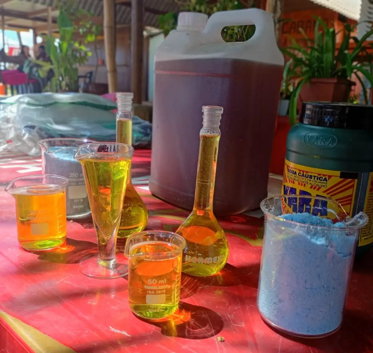 Alunos de Lauro de Freitas transformam óleo usado em sabão na praia.