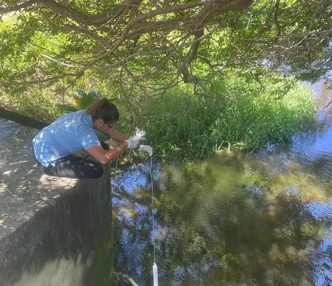 Moradores coletam amostras de água no Rio Sapato